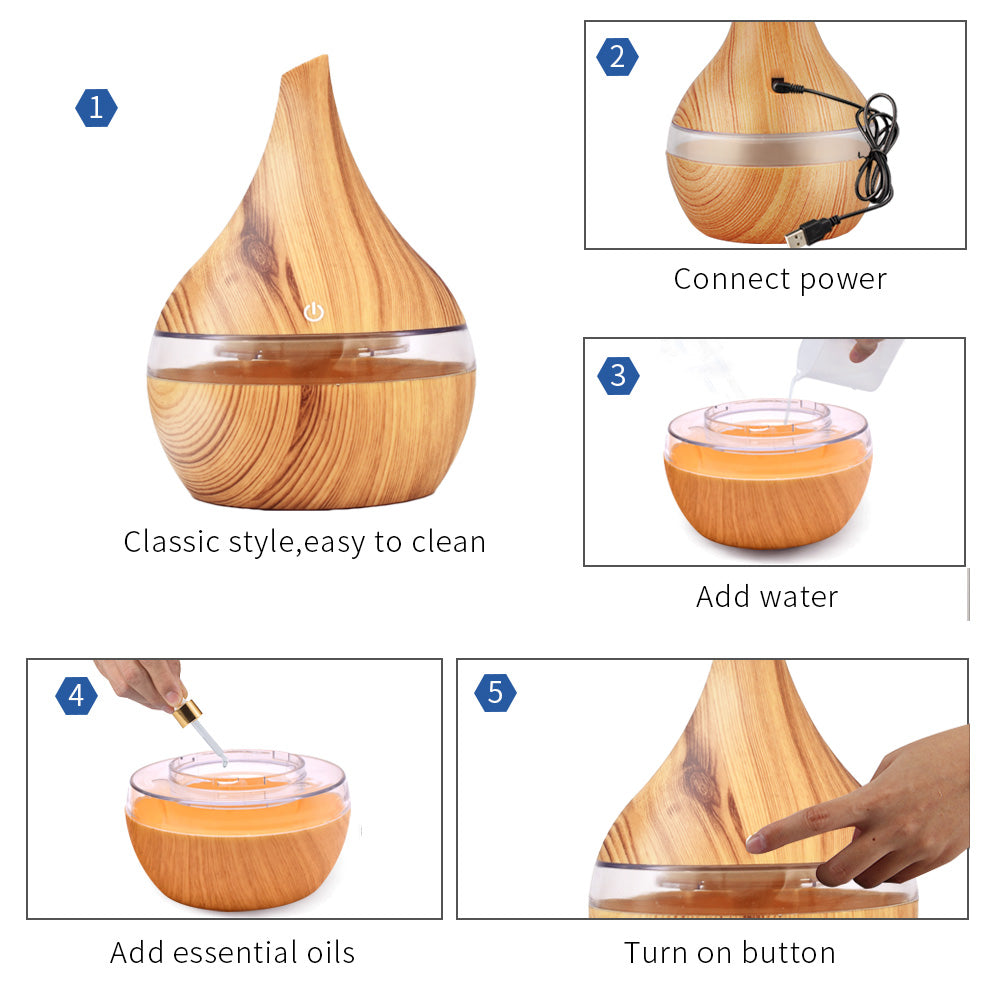 Searide-Humidificateur d'air USB Diffuseur d'arômes d'huile essentielle Aromatherapy en bois pour la maison