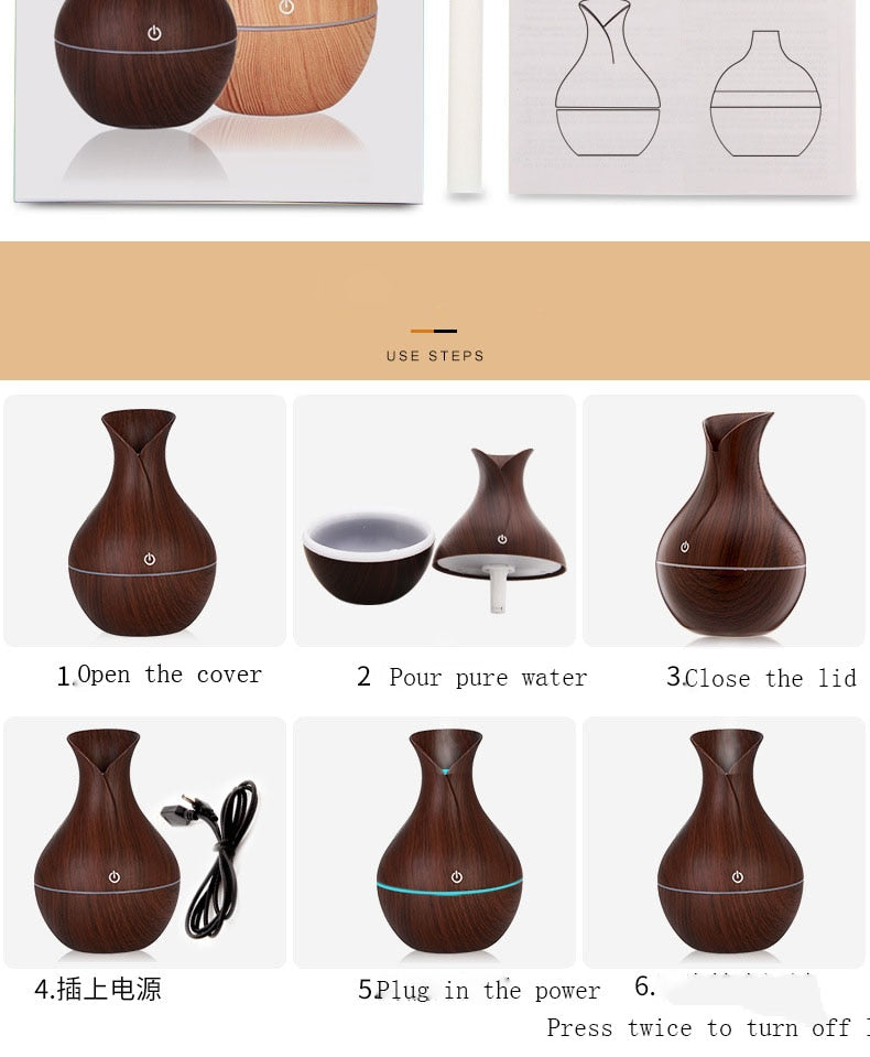 OLOEY-Humidificateur d'air à diffuseur d'huiles essentielles aromatiser à l'air avec humidificateur 7 couleurs de couleurs en bois pour le bureau à domicile